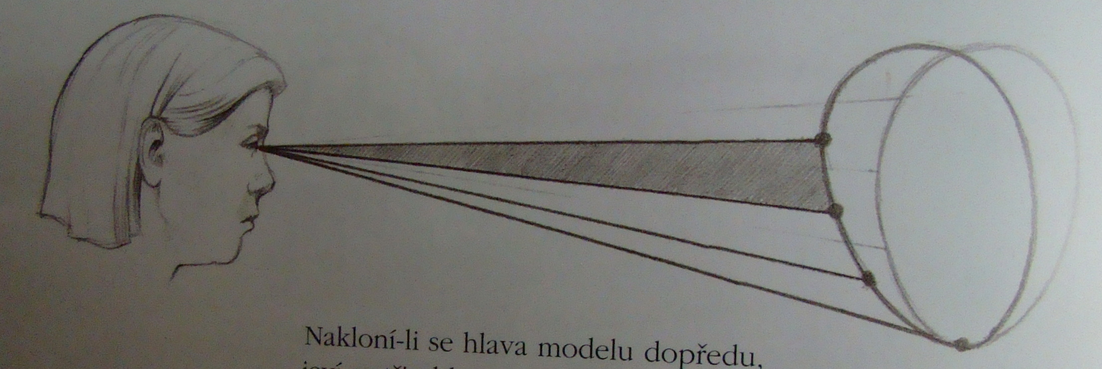 8.Ak sa hlava nakloní dopredu, zdajú sa tri oblasti tváre, vďaka pravidlám perspektívy ako rôzne veľké.