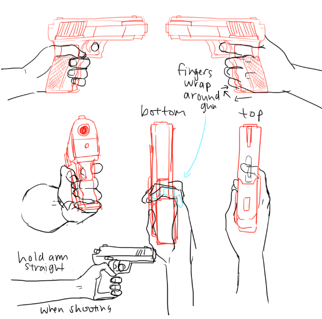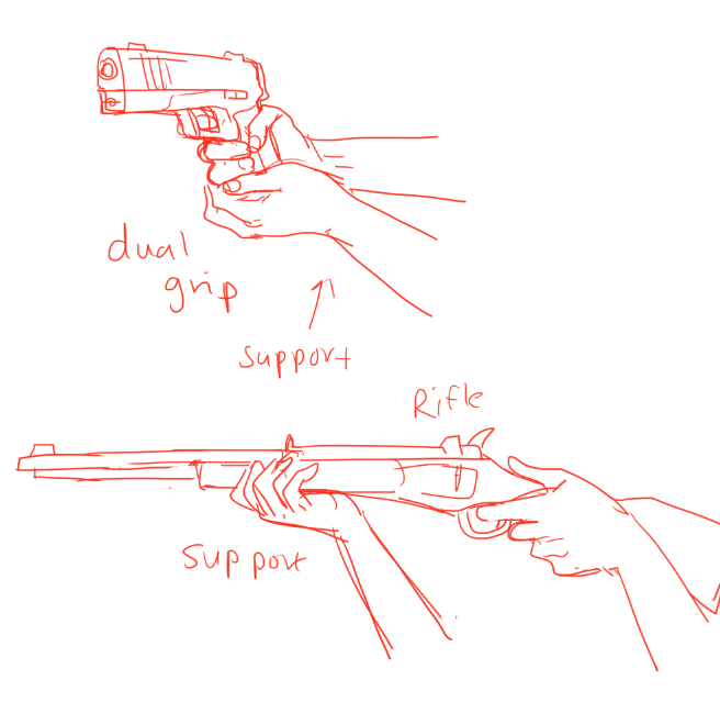 Tu máš zobrazené ako sa správne drží zbraň rukou.