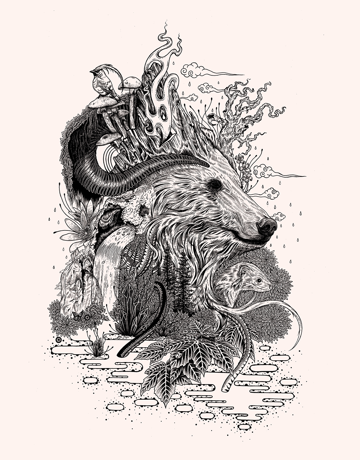 Jeho kresby sú ako zo sna, založené hlavne na sledovaní zvierat, vytvára rôzne stvorenia a svety.