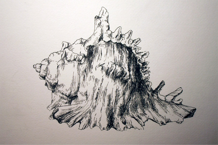 Potom už len sleduj video a opakuj jeho kroky. Doplníš línie a krivky, plus začneš tieňovať. V tomto prípade stačí slabá šrafa a mušle hneď vyzerajú plasticky.