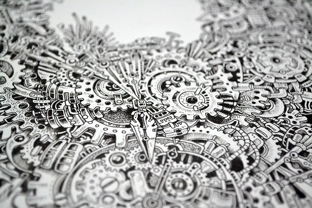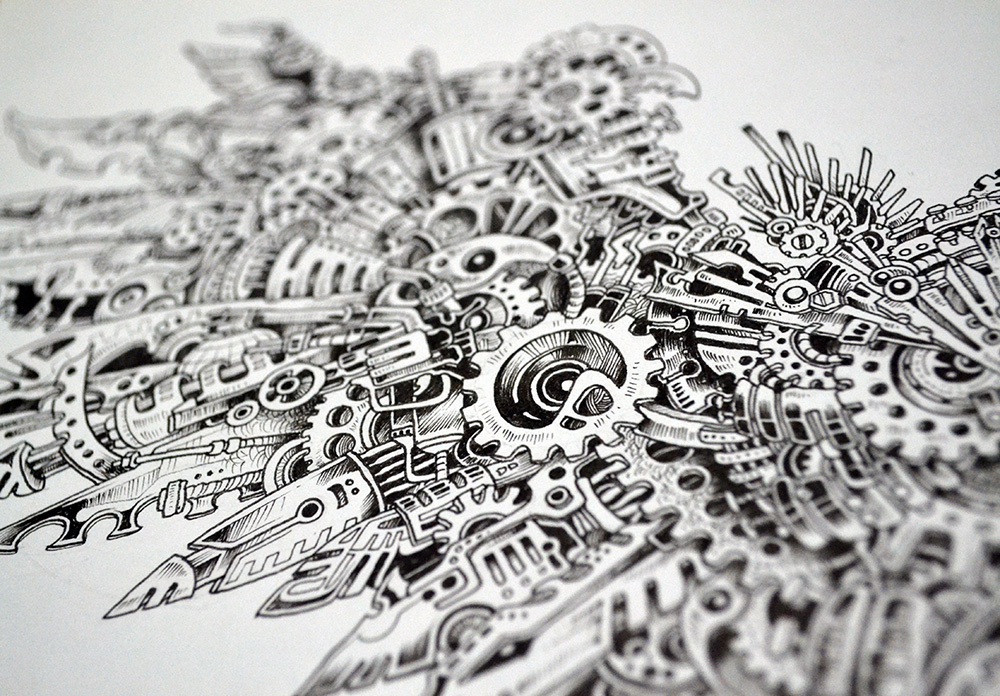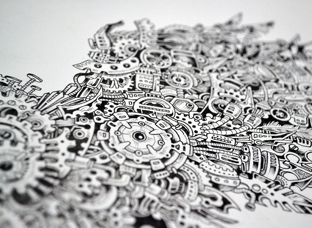 Väčšina jeho práce je charakteristická presnými líniami, vzormi a malými elementmi ktoré sú spontánne kombinované tak, aby vytvárali masívne kompozície. Vkladá do nich hlavne každodenné zážitky, pocity alebo čokoľvek čo ho v ten deň inšpiruje.