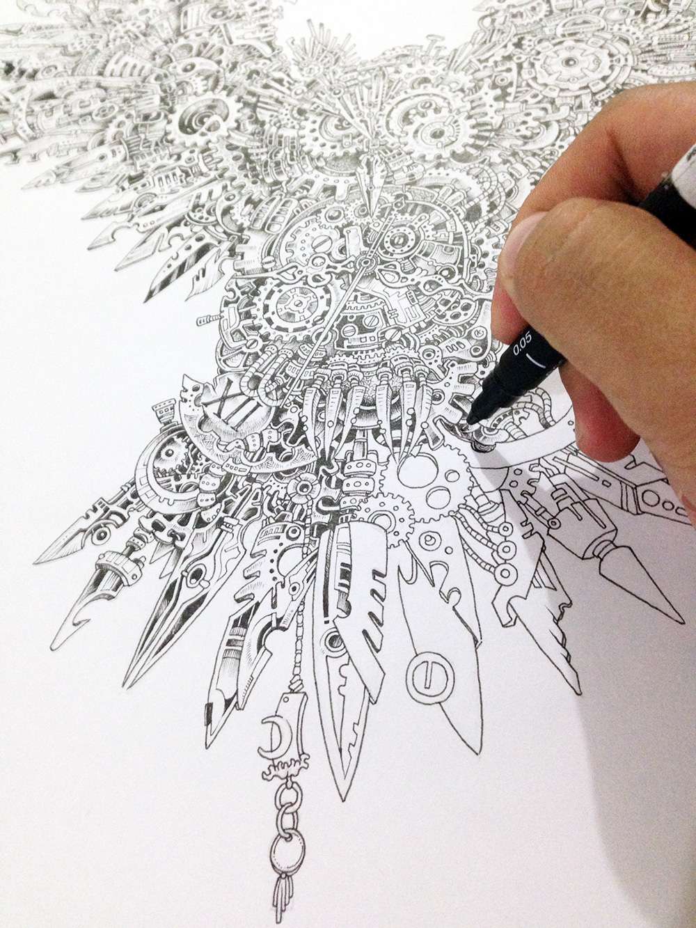 Filipínsky ilustrátor Kerby Rosanes pracuje väčšinou s obyčajným čiernym perom a vytvára s ním svoje vlastné magické fantázie. Má 23 rokov a berie svoje umenie ako osobný koníček, ktorý sa stal aj jeho prácou keď ho začali uznávať na rôznych dizajnérskych blogoch, medzinárodných magazínoch a online komunitách.