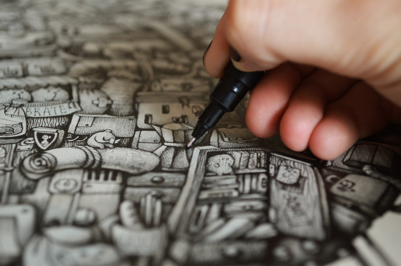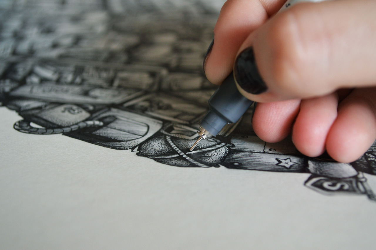 Autorom je Maria Tiurina Táto práca je urobená na formáte A1 tušovým perom. Trvalo jej to skoro pol roka kým ju dokončila. Tiež použila vodové farby, ceruzu a centra fixku.