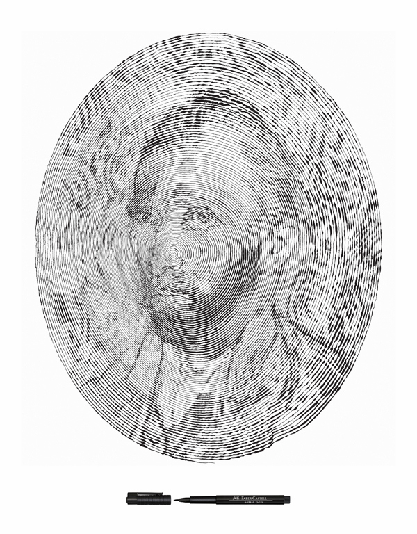 Tieto neuveriteľné kresby vytvoril Chan Hwee Chong. Práce vznikli ako reklama pre značku pomôcok na kreatívne produkty Faber Castell. Tieto práce sú o to zaujímavejšie pretože dizajnér tieto diela urobí takpovediac jedným ťahom. Používa k tomu fixku reklamnej firmy a špirálovým ťahaním postupne vytvára známe diela. Šialené!