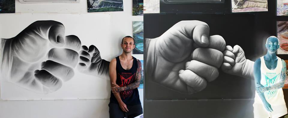 Táto práca je prvá svojej veľkosti, predtým skúšal túto techniku iba na menšie formáty. (Obrázky nájdeš nižšie.) Autorovi sa páči na tejto fotke fakt, že to pôsobí skoro ako kúzlo. Pri práci použil čierny uhlík, uhlík v ceruze, grafitové ceruzky a pentelky.